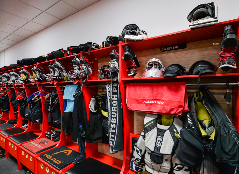 У каждой команды — своя раздевалка, внутри которой у каждого игрока свой именной отсек. В раздевалках есть душевые и сушильное оборудование для формы